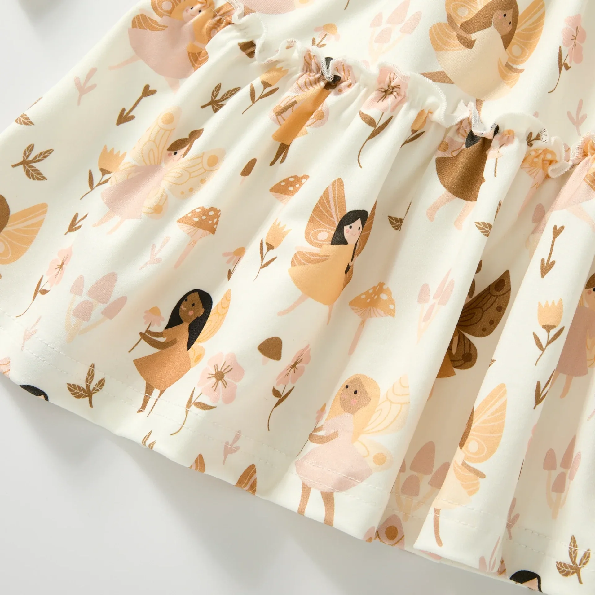 Our Boho Fairies Dress is whimsical and wonderfully soft! Long sleeves and gorgeous ruffles make this dress adorned with fairies and flowers a treasured part of your little girl's wardrobe!